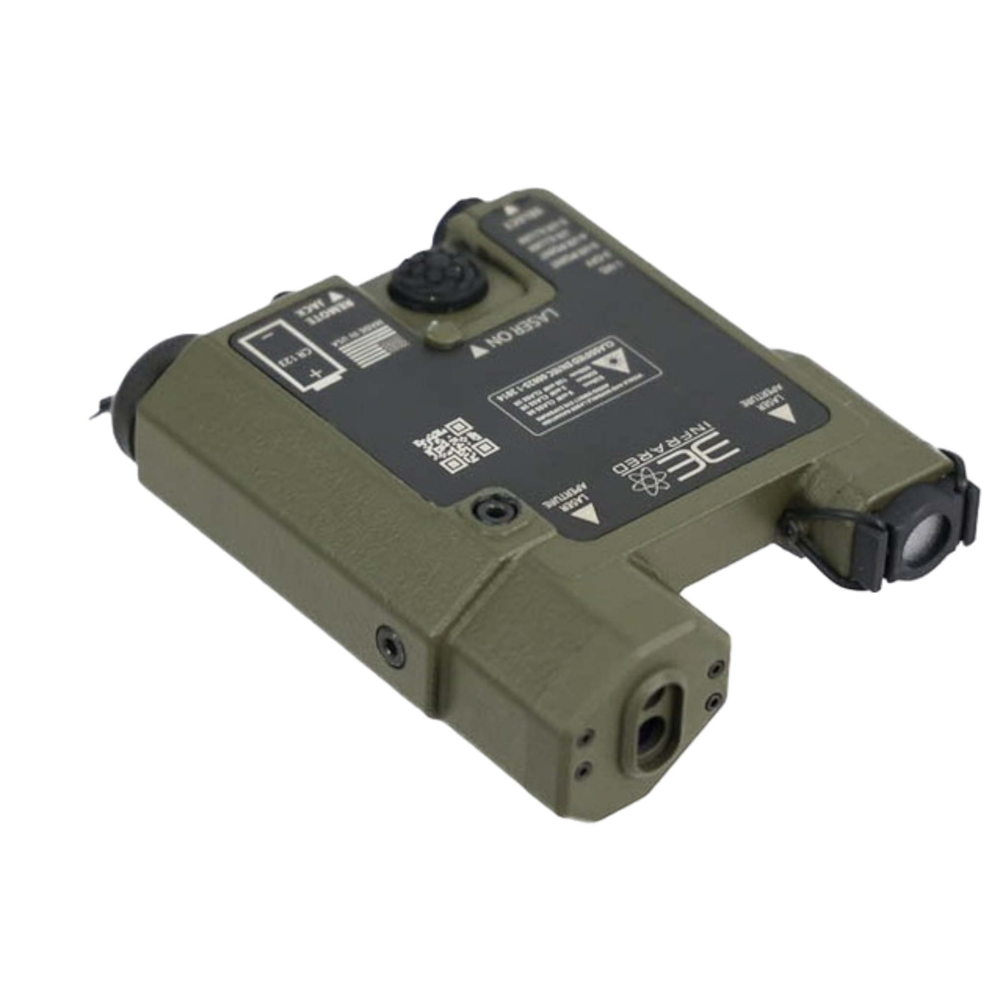 The 3EIR Designate IR-V is a dual-laser aiming device featuring a VCSEL infrared illuminator, housed in an extremely durable and low-profile synthetic nylon body. The co-aligned green visible and infrared lasers enable quick and easy zeroing, while its intuitive controls make operation straightforward with a single mode knob, fire button, and Crane-compatible remote switch port. The tethered flip-up diffuser cap allows for seamless transition between CQB and long-range illumination.